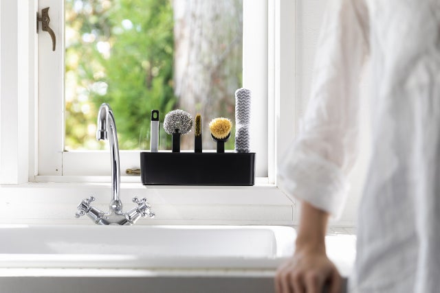 - キッチン周りに必要なブラシをオシャレに収納。キッチンが華やかに。