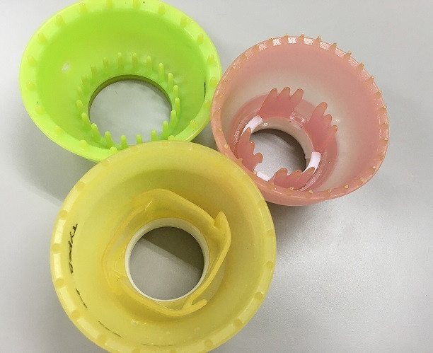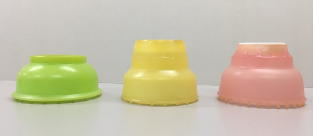 左から順に開発初期(緑)、中期(黄)、後期(ピンク)のカップです。