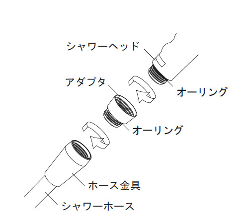 ※INAX製シャワーホース(バランス釜を除く)に取付ける場合は、製品にあらかじめセットされているオーリングを外し、付属のオーリングに取替えてください。
