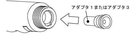 より強い勢いを求められる方はアダプタ1を、もっと優しさを求められる方はアダプタ3を装着してください。装着はキリカキの位置を合わせながら差し込むだけで完了です。この時、しっかり奥まで差し込んでください。漏水の原因となります。