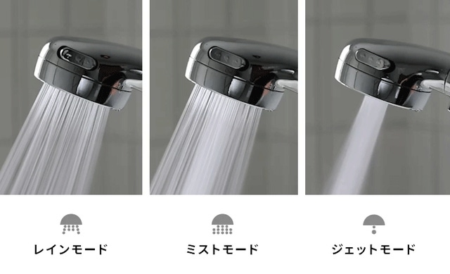 『ジームスウルトラファインバブルシャワー』はワンタッチで3段階の水流モードに切り替わります。