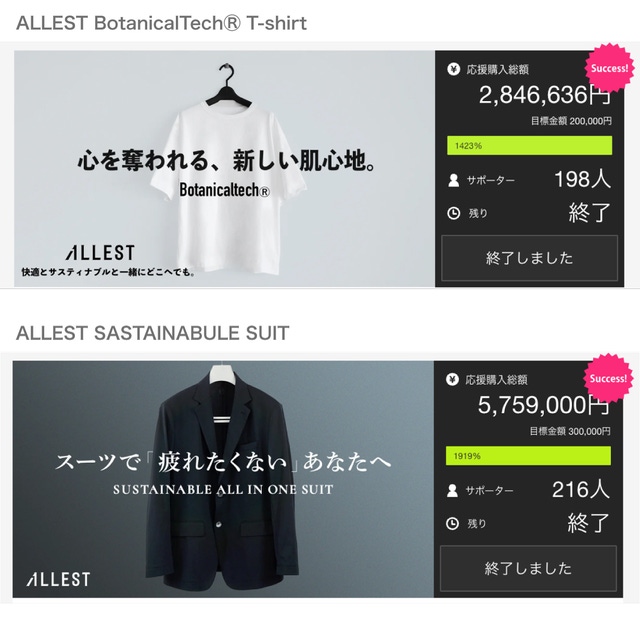 前作のサステナブルスーツはクラウドファンディングを中心に累計約400名の方の手に届きました。
