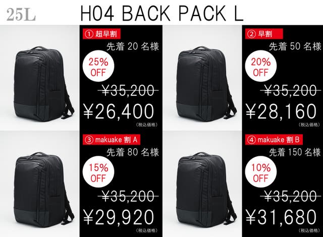【makuake割B】H04バックパック25L 10%オフ 先着150名様