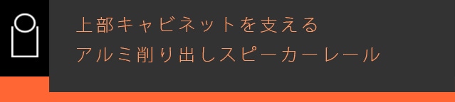 上部キャビネット後部のリアマウンターもアルミ削りだしパーツを採用。低音はスピーカーユニット裏から発生して円筒内を後方に向けて波動するため、これを受け取るリアマウンターも肉厚を意識した設計で重量感たっぷりのアルミ削りだしパーツを採用。スピーカーユニットの音をしっかりと受け止めます。