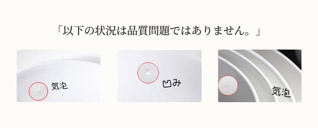 陶器製品は、部分的に小さな凹みや気泡、黒点などが見られることがありますが、これは正常な製造過程での現象です。使用には問題ありません。