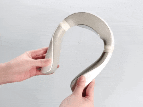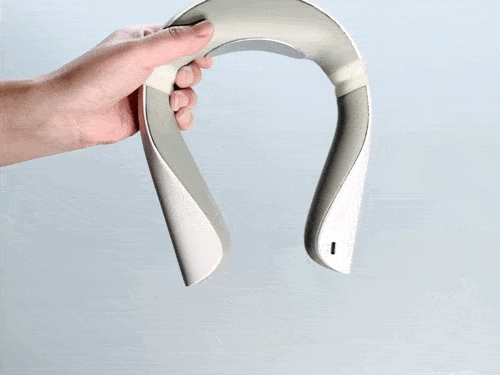 - 首もとへの圧迫感を感じない、首元に沿ったプロダクトデザイン