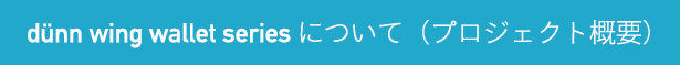 「dunn wing wallet series」(デュン ウィングウォレット シリーズ)は、シンプルで美しく、薄くて小さくて軽い、使いやすい財布を作りたいという思いで誕生した、カードとお札に特化した極薄の財布です。様々な大きさが存在する小銭や鍵を無理に一緒に持ち運ぼうとせず、カードとお札やレシート、領収証などの薄いものに特化することで、dunnの特長である約0.5mmの薄い革を最大限に活かした薄い財布をデザインしました。