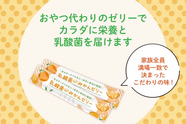 そんな時はおやつで補うのも一つの手です。栄養たっぷりの乳酸菌みかんゼリーをお子さまの毎日の健康習慣として取り入れてみてはいかがでしょうか。