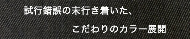 今回の1秒スーツに採用された生地は、原着のワタを数種類、絶妙な割合で配合し、こだわりの4色を表現しています。また、特殊製法で紡績を行うことにより、天然繊維のような味のある風合いに仕上げました。