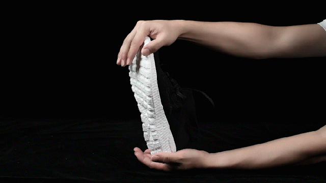 衝撃を吸収した後は反発力により元の形に戻ることで、ポップコーンのようにはじけるような弾力性により、アクティブな動きを補助します。