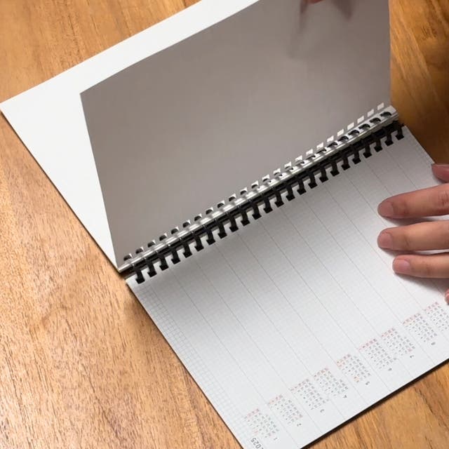 表紙の硬さは、リングノートとして使うときに重要なポイントです。柔らかすぎると、立った姿勢や不安定な場所での筆記が難しくなります。GRID LIFE PLANNERの表紙は、裏側に特殊紙を張り合わせることにより、ハリ感を出しています。
