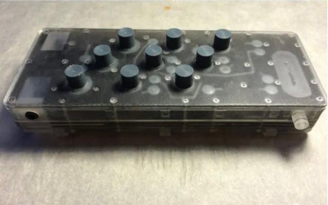 この 2 つ目の失敗した設計は、マイクロ油圧 (そう、装置内に液体) を使用して、突き棒で弦を押し下げるというものでした。設計の複雑さと液体の絶え間ない漏れが原因で、この設計は失敗しました。