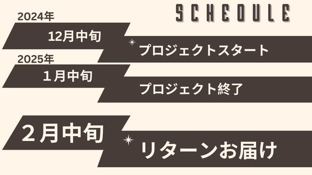 このプロジェクトはAll in型です。目標金額の達成に関わらず、プロジェクト終了日の2025年01月15日までに支払いを完了した時点で購入が成立します。