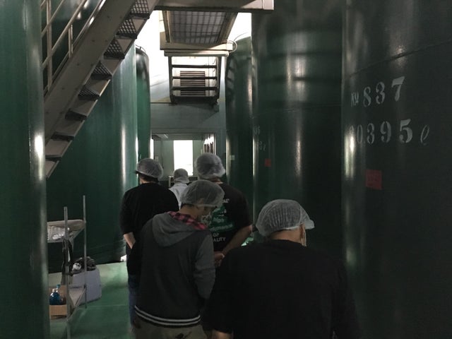 酒造を訪れるのが初めての社員は興味深々の様子。