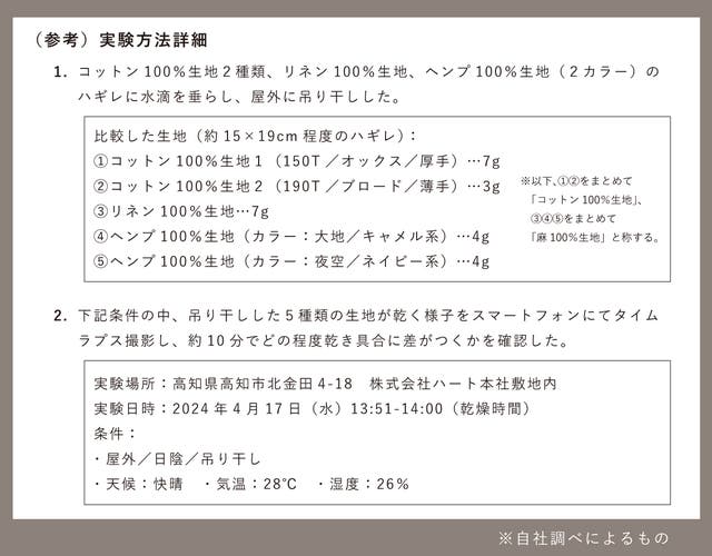 天然繊維とは思えないほど充実した機能を持つ ヘンプ甚平 の魅力を、Organic Heart のスタッフが 自社で行った実験結果 とともにご紹介させていただきます!