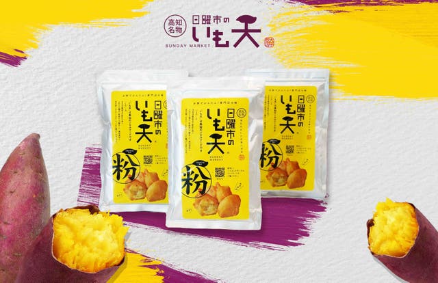 早割限定割引!ご家庭で高知の日曜市のいも天を再現できるいも天の粉がマクアケ限定の早割でオトク!