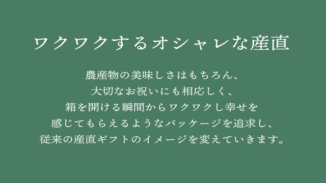 私たちは、そんな農家さんと想いを共にし、世界に誇れる日本の田舎から人々に小さな幸せを与えられるサービスを展開していきます。