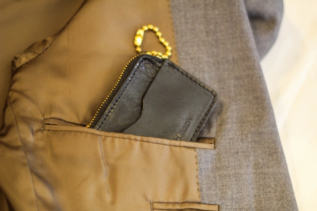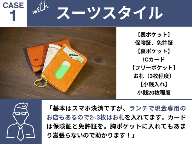 ICカードやクレジットカードが入るだけの、必要最低限のスリムなスタイル。
