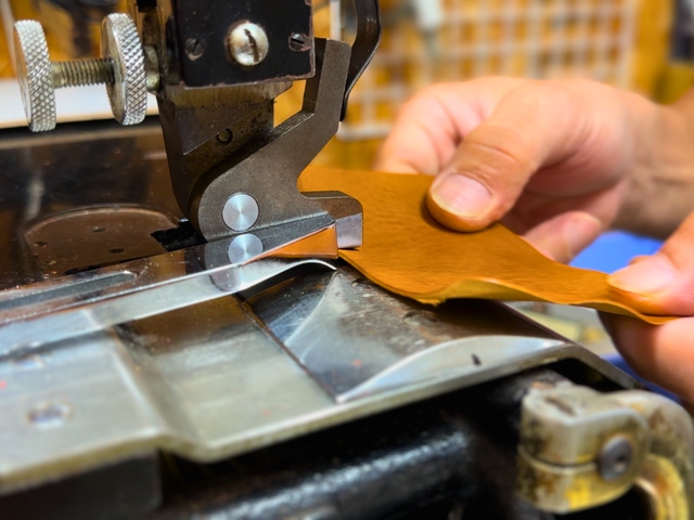 コバ(裁断面)磨き。見た目と耐久性を高める大事な工程。