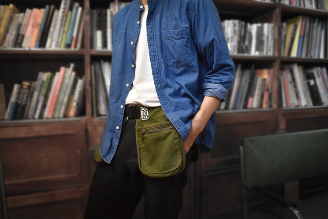 元は射撃用として使用されていたハンティングエプロンをリデザインし、日常的に使用するスマートフォンや財布などを収納するのに便利なウェアラブルマルチポケットに仕上げました。