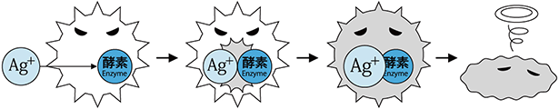 本革のトップコーティングに銀イオンAg+の抗菌力を用いて開発された抗菌剤を配合。付着した細菌の繁殖を抑制します。