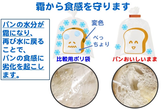 - 冷凍すれば「パンおいしいまま」、常温でもパンを衛生的に保つことができます。