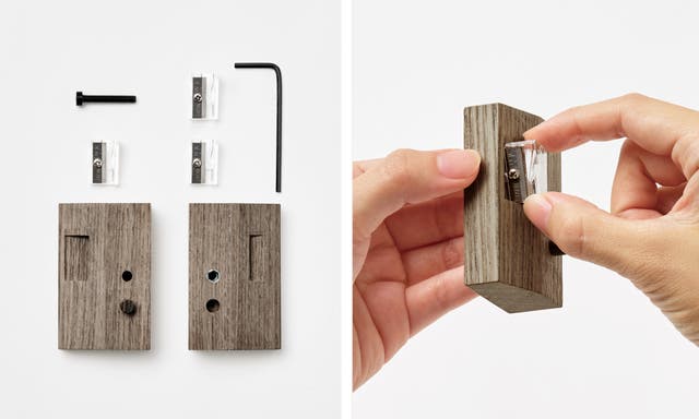 また、えんぴつ削りの刃が痛んできても繰り返し本体の胴木を使って頂けるように、ご自分で刃のアタッチメントの入れ替えが可能な設計にしました。