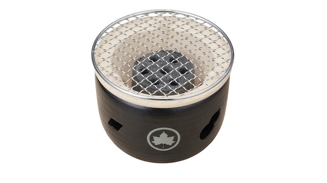 卓上で使える炭火コンロ。陶器内に水を入れる事により本体の加熱を防ぎ、設置面への熱を軽減します。