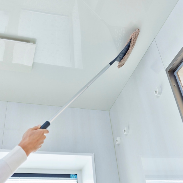 浴室の天井の結露はカビの原因に・・。Luotta (ルオッタ)ならば手の届きにくい浴室天井にもしっかり届きます。マクロファイバーダスターを取り付ければ「結露を吸水」してくれます。