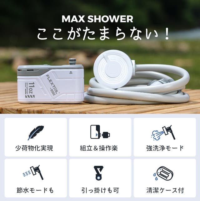 Makuakeでの総サポーター数2万人超の人気ブランド、FLEXTAIL(フレックステイル)はこの度、アクティビティ後に爽快感を簡単にもたらせる充電式アウトドアシャワー「MAX SHOWER」を日本に初上陸させます!