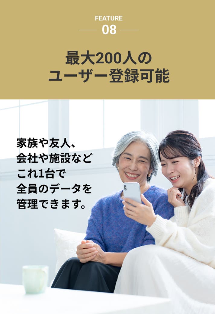 - 【家族で使える&最大200人分保存】複数ユーザー対応でデータ共有OK!一台で家族の健康管理を
