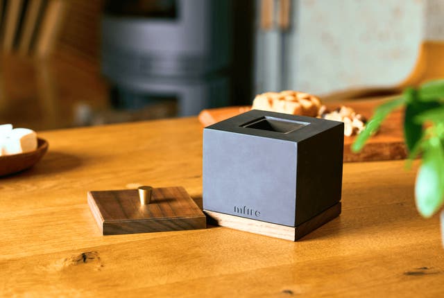 今回は、高級木材であるウォールナット素材を組み合わせたほか、丸型から四角型に形を変えました。これにより、温かみに加えて高級感のあるmfireが完成しました。