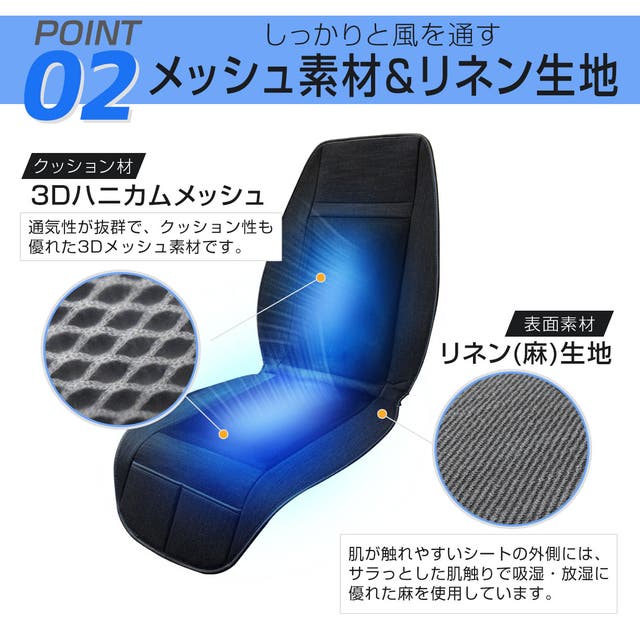 この『MTKコンフォートファンシート』では、シート用のクッションの様に耐圧を分散でき、さらに生地には通気性の良いメッシュやリネン(麻)を採用して、快適性をとことん追求しました。