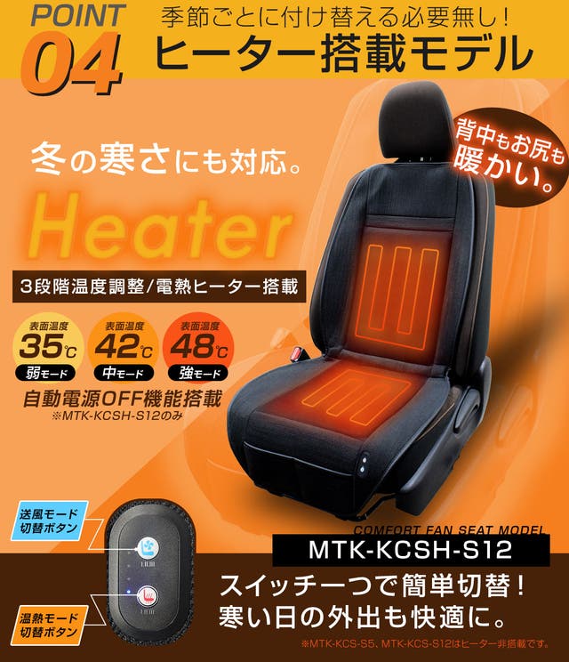 また「夏と冬」両シーズンで使えるヒーター機能を搭載したモデル(電源はシガーソケット電源)もありますので、使う環境に合わせて3タイプの中からお選び頂けます!