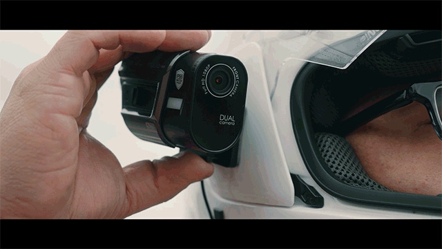 また、基本はヘルメットの右側に取り付ける仕様になっていますが、本体は180°回転するので左側にも取り付け可能。
