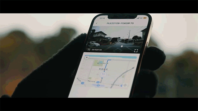 GPS機能を搭載したMUFU V30Pなら、走行経路や日時も同期して記録されるので、単独でのアクシデントでも安心です。