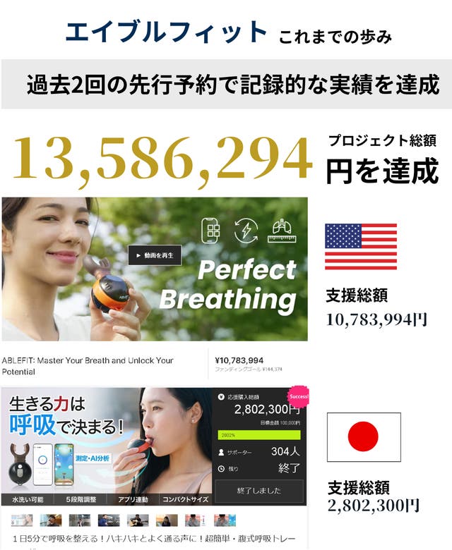 私たちの情熱は、エイブルフィットを通じて、人々が自らの呼吸に新たな可能性を見出し、それが生活全体の向上につながることにあります。