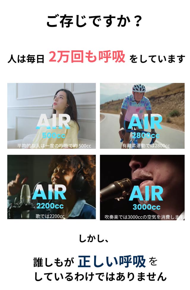 しかし、呼吸筋を鍛えるには、肺を大きく動かす有酸素運動や、腹式呼吸を意識するヨガなどの定期的で時間が掛かるトレーニングが必要だったので、毎日忙しい現代人にとってこのような時間を確保するのは大変でした。