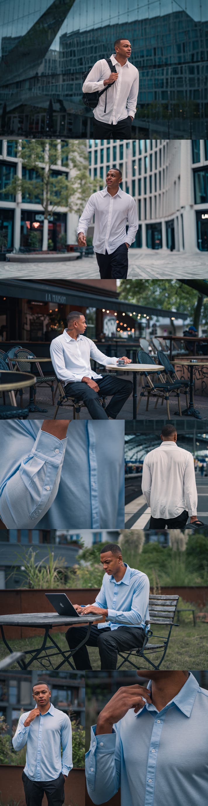 従来のドレスシャツよりも驚くほど柔らかく、通気性に優れた贅沢な感触を提供します。