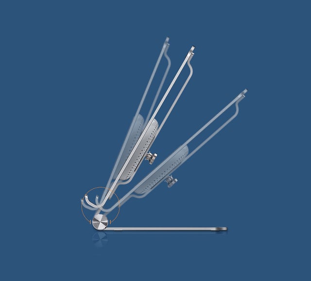 直角の90°から、ほぼ水平の180°近くまで調節できるため、作業内容や視点位置に合わせて正しい姿勢での使用を促し、首や肩への負担を防ぎます。