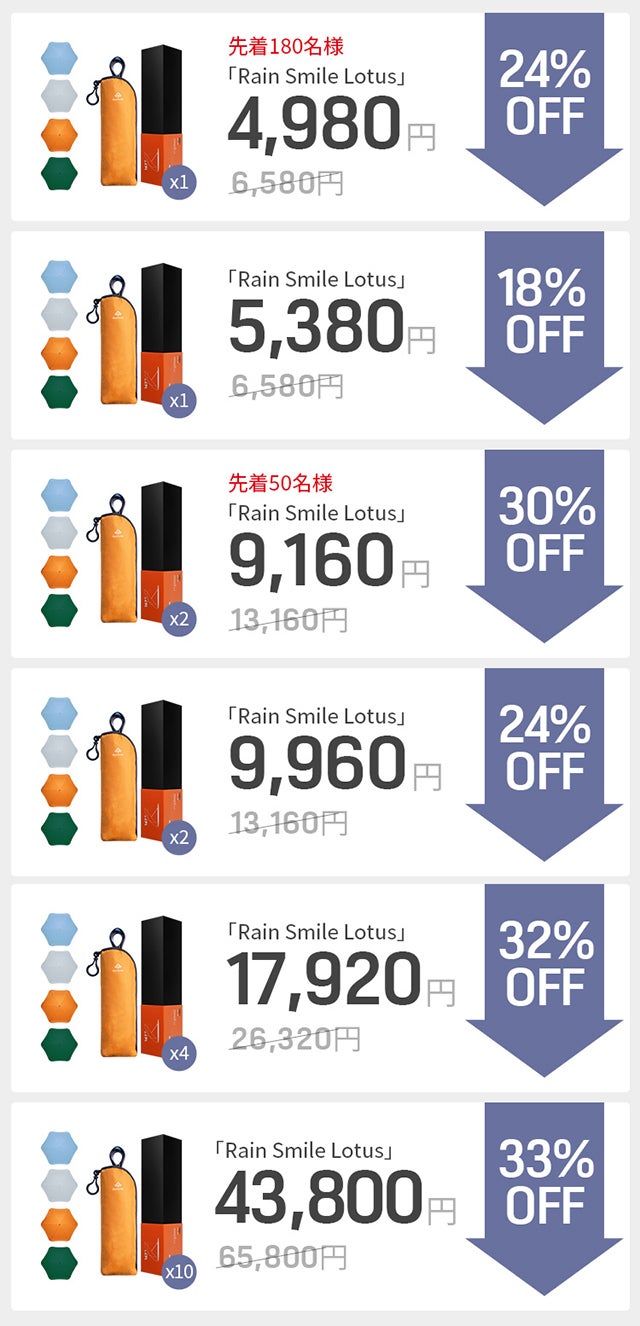 超撥水蓮型傘「Rain Smile Lotus」4セット