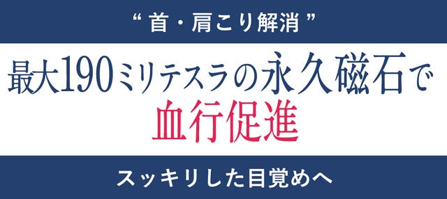 - 肩と首のポイントにハの字型に永久磁石を配置し、広範囲に血行改善。朝のスタートからスッキリ快適に