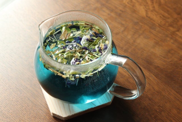 初めて上勝晩茶を飲む方ですと発酵茶独特の酸味を感じる方が多いのですが、今回初心者の方でも無理なく取り入れて頂けるように同じ徳島県産の6種類のハーブ(クロモジ・ビワ葉・明日葉・クコ葉・ハスの葉・ヨモギ)を加え、上勝晩茶50%、残りの50%をこの6種類のハーブを使い、飲みやすい比率で調合し相乗効果にアプローチした仕上がりとなっています。