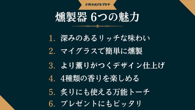 今回はお酒を愛してやまないあなたへ、6つの魅力を持つ燻製器をご紹介させていただきます。