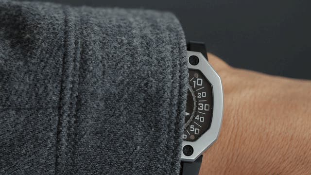 時計の右側だけで時間を表示するので、ジャケットの袖に時計が隠れていても今の時間が分かります。