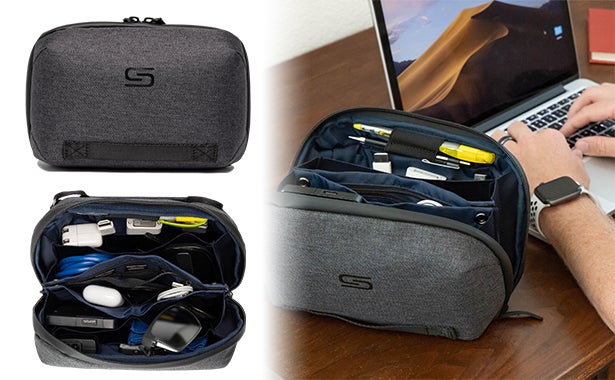 旅行の必需品とも言える充電ケーブル、モバイルバッテリー、SDカードなどなど、こちらも何かとごちゃつきやすいPC・スマホ関連アイテムは専用テックポーチにまとめて収納。現金や筆記用具などを入れても良いですね。