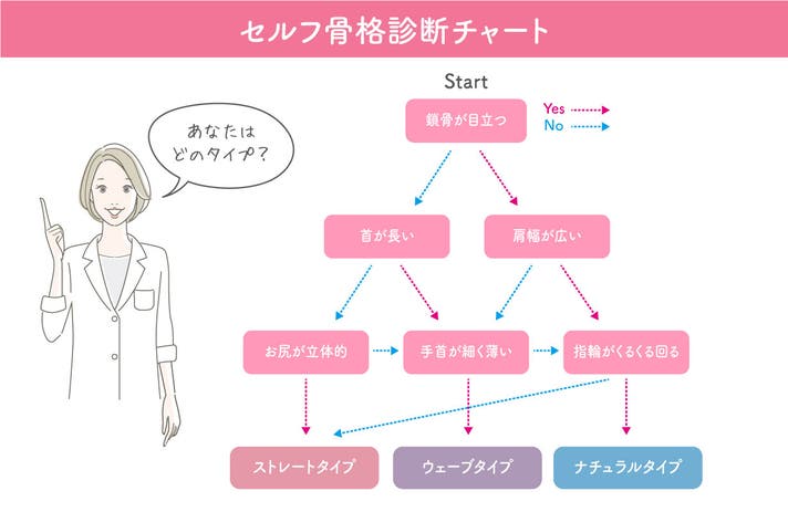 自分の骨格タイプが気になる!という方は、下の骨格診断チャートで、是非確認してみてください♪