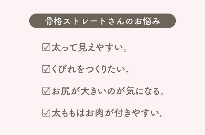 骨格ストレートさんの特徴をまとめるとこんな感じですが、実はこんなお悩みもあるんです…。