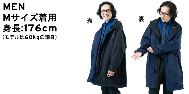 - 撥水性、防風性を兼ね備えたリバーシブルタイプ【スタイリッシュレインコート】
