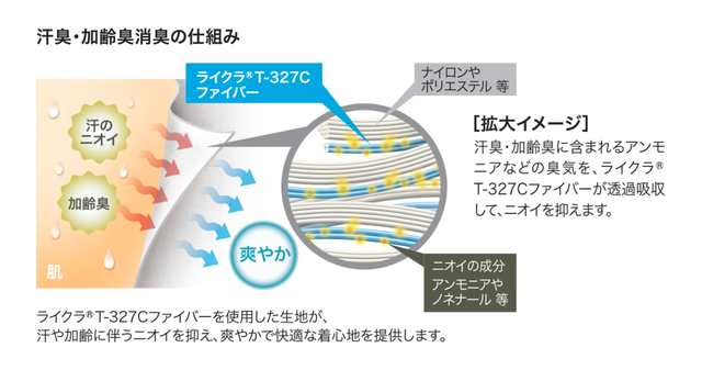 消臭タイプのポリウレタン弾性繊維「freshFX®︎」ライクラ®︎T-327Cファイバー採用